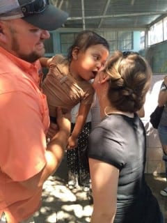 After arriving late Monday night, Megan and Ben woke up to a new world Tuesday morning—lush green hills, roosters crowing, and misty fog rolling over the Guatemalan countryside. Their first fitting took place in Chiquimula, about 40 minutes away, part of which required standing in the back of a pickup truck on rugged, unpaved mountain roads. Along the way, they saw cows, stray dogs, and families carrying bundles of wood and hay up steep paths.